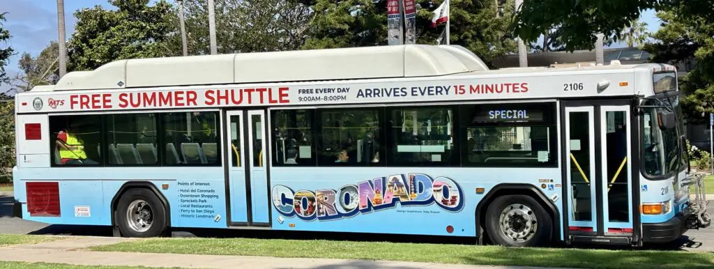 Look for the colorful, summer-wrapped buses looping every 15 minutes through Coronado’s charming Village. Stops are just steps from popular resorts like Glorietta Bay Inn, Coronado Island Marriott Resort, and the legendary Hotel del Coronado.