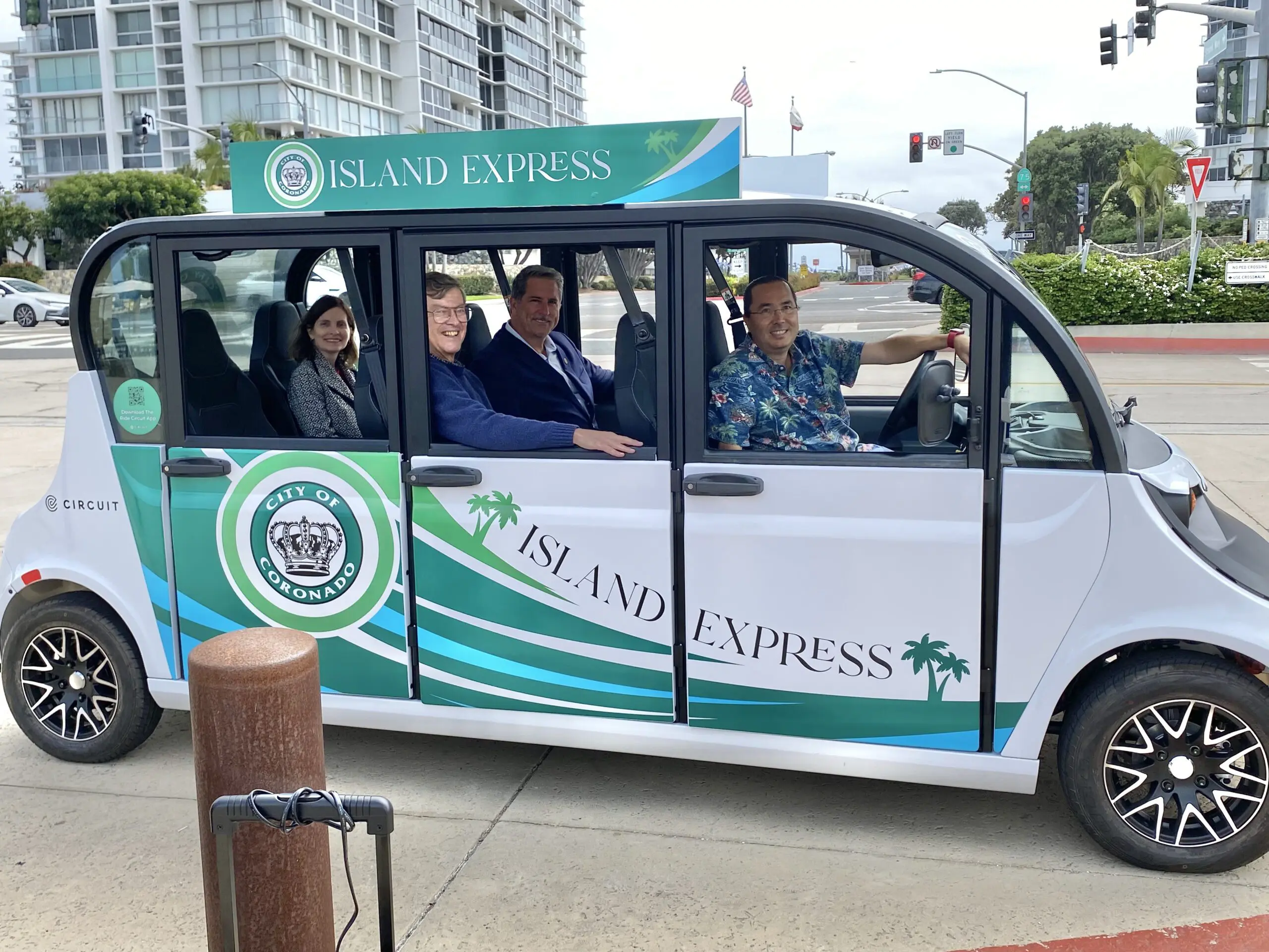 A free ride across the island is just a tap away. Download the free RideCircuit app, open a free account and request a ride. The Island Express has 6 electric vehicles providing rides in Coronado Village and 2 electric vans for free ride from the Coronado Cays and Loews Coronado Bay Resort. The service is provided by the City of Coronado in a effort to make transportation easier and more green. Learn more about the service hours here.