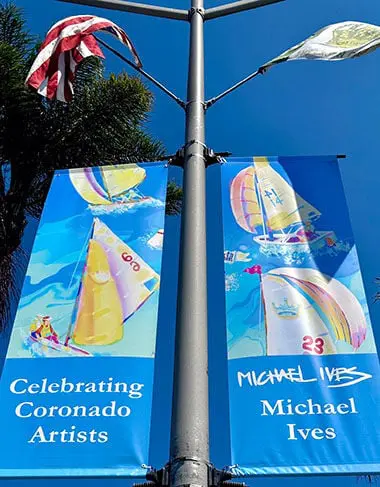 Discover Coronado announced it will provide funding—alongside the City of Coronado—to extend the popular Orange Avenue artistic banner program through July 2026. The joint effort, which began in 2016, preserves one of Coronado’s most visible and celebrated traditions. “These banners are more than decoration—they’re a living gallery of Coronado’s culture, creativity, and community spirit,” said Kate Berry, Vice-Chair of Discover Coronado, who led the funding discussion. “Keeping them in place means continuing to tell the stories that make Coronado special.” The banners spotlight local nonprofit organizations, promote signature community events, and contribute to the city’s welcoming, walkable atmosphere—an appeal that draws visitors and boosts the local economy. The program will feature five different series of banners over the coming year, each designed to beautify Orange Avenue from First Street to Coronado City Hall. Each banner’s artwork is carefully reviewed by the Coronado Cultural Arts Commission and approved by the Coronado City Council, ensuring that every design reflects the city’s unique character. Discover Coronado is the official destination marketing firm for Coronado; however, it receives no funding from the city. The work of Discover Coronado, and its projects, is paid for by an assessment collected from overnight guests at four local resorts.